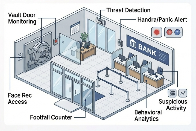 We offer e-Surveillance solutions to businesses using Video Intelligence . Our State of the Art Technology platform provides Actionable Intelligence (AI) , Business Insights (BI) and Customer Inputs (CI) by Analyzing Live Video Streams using Artificial Intelligence techniques.